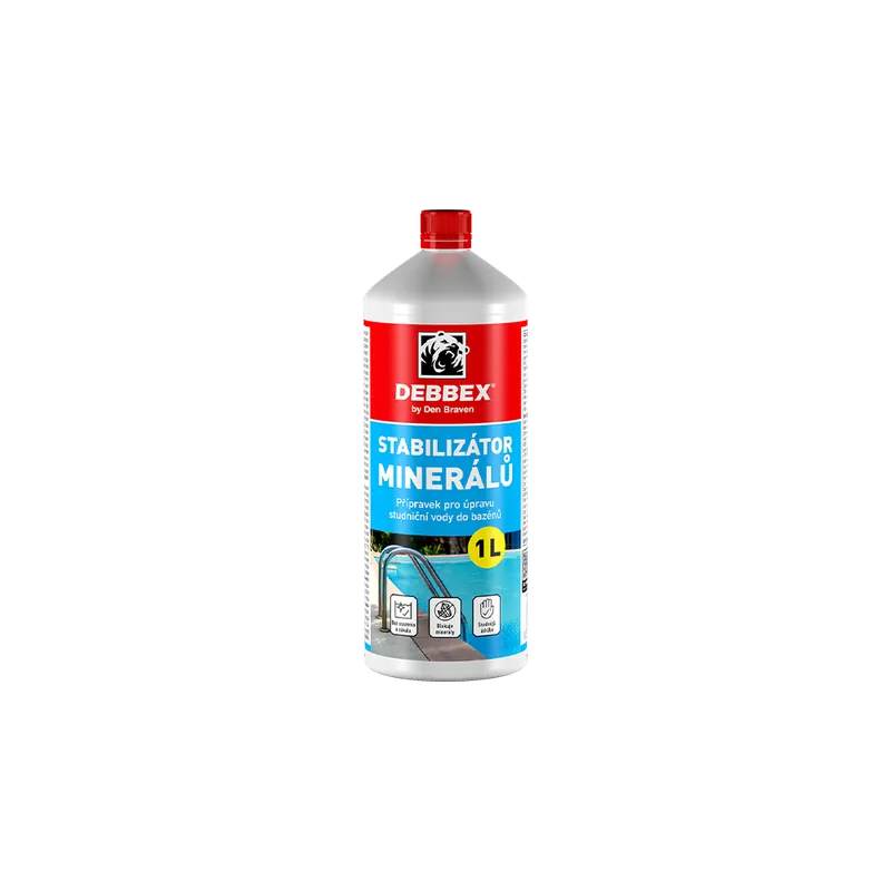 Stabilizátor minerálů je tekutý přípravek pro ošetření mineralizované bazénové nebo studniční vody. Přípravek zablokuje minerály a rozpuštěné kovy způsobující zákal. Ošetřená voda je nezávadná a snáze se udržuje.