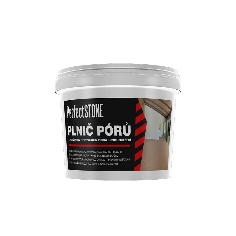 Plnič pórů pro Kamenný / Mramorový koberec je jednosložkový disperzní akrylát, který slouží k vyplnění pórů mezi kamínky a mramory koberce PerfectSTONE v interiéru. Zajišťuje jednodušší údržbu podlah a brání vniknutí nečistot a vody mezi kamínky a mramory.