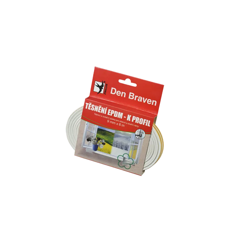 Pro efektivní těsnění spár mezi rámy oken a dveří. Samolepicí těsnicí profily z kvalitní EPDM pryže jsou navrženy v rozdílných K, P a D profilech tak, aby pokrývaly širokou potřebu těsnění různých spár. EPDM pryž absolutně odolává vlivům větru, UV záření a nepřízni počasí, nepraská ani nepuchří a zůstává elastická i po mnoha letech. Profil skvěle vyplňuje mezery, má strukturu uzavřených pórů a tudíž neabsorbuje vodu. Tepelná odolnost pásky -40 °C až +60 °C. Aplikovat pásku je možné v rozsahu +5 °C až +25 °C.
