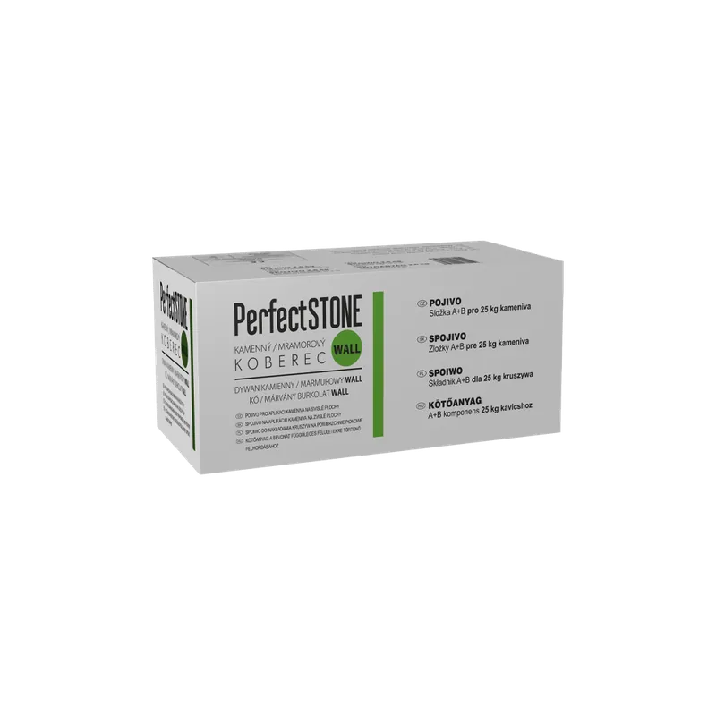 Pojivo na epoxidové bázi speciálně upraveno pro aplikaci kamenného koberce na svislé plochy. Pojivo lze použít pro všechny mramory a říční kamínky do frakce 4-6 mm. Součástí balení je i penetrace. Vhodné pro aplikaci v exteriéru i interiéru.