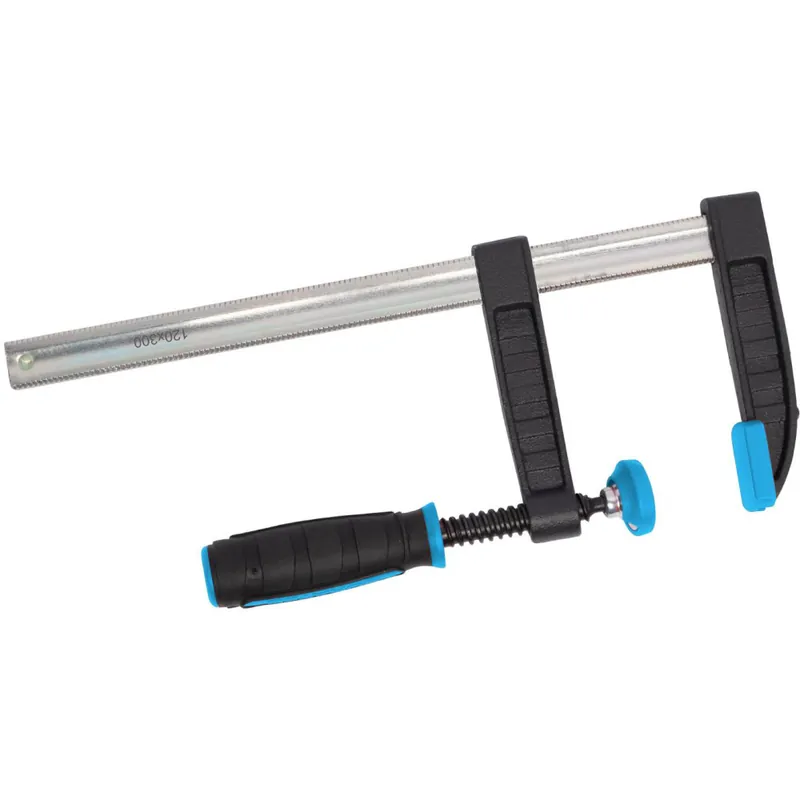Stolařská svěrka pro přesné a pevné upnutí materiálu při lepení, vrtání nebo montáži. Robustní kovová konstrukce zajišťuje dlouhou životnost, zatímco ergonomická rukojeť umožňuje pohodlné a silné dotažení. Plastové krytky na čelistech chrání povrch materiálu před poškozením.